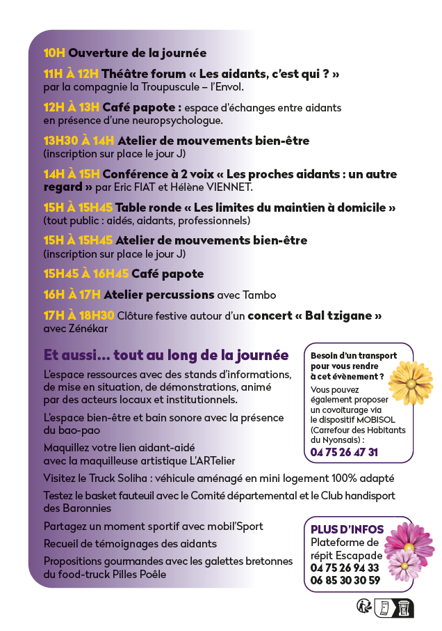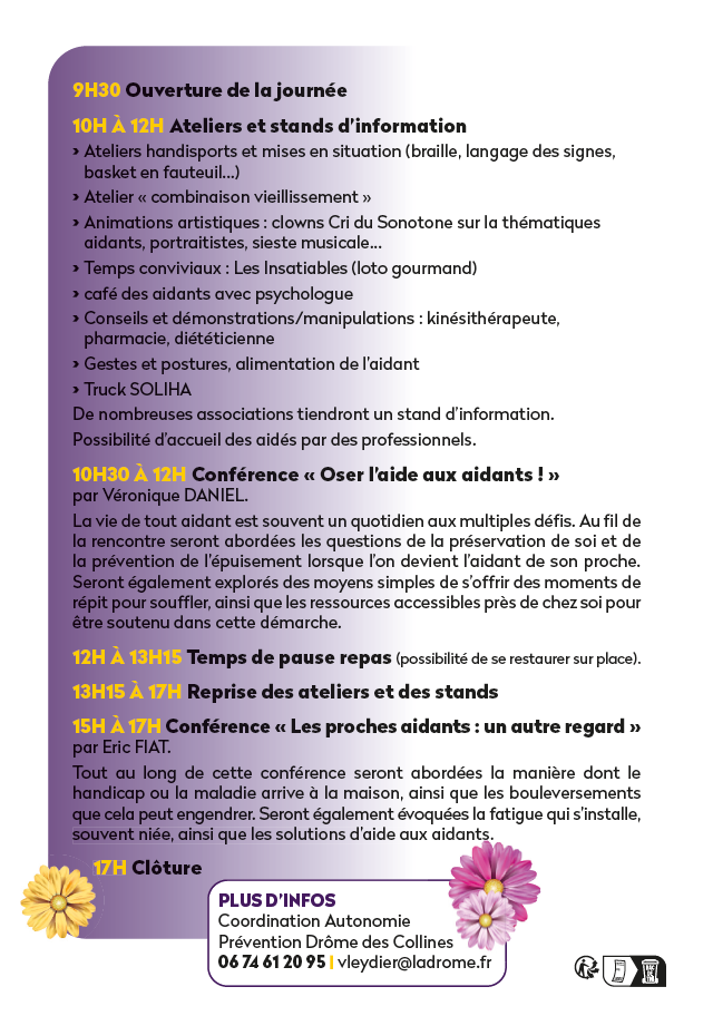 Ces journées sont ouvertes à tous les aidants souhaitant s’informer, échanger et bénéficier d’un moment de soutien.